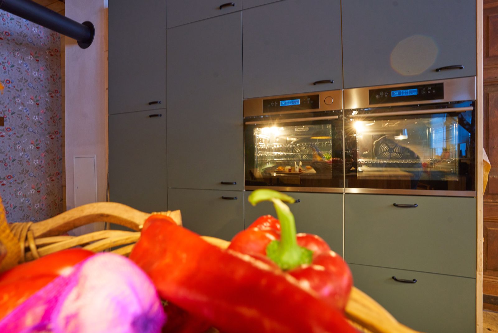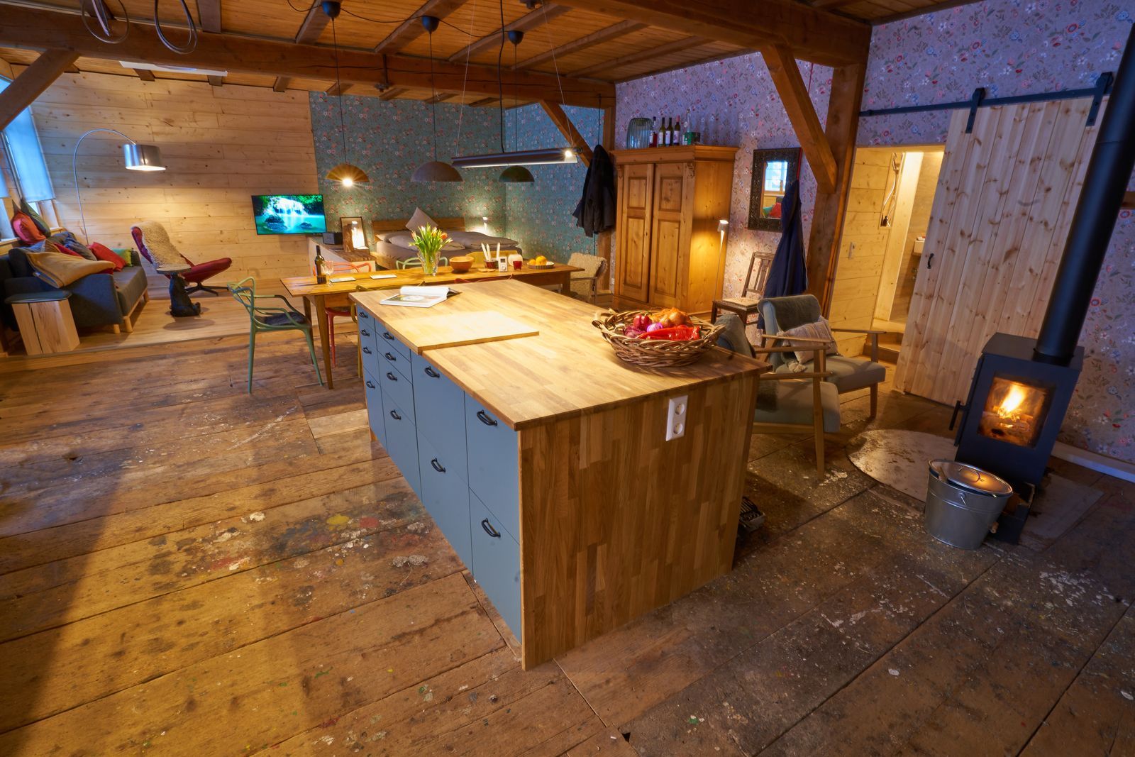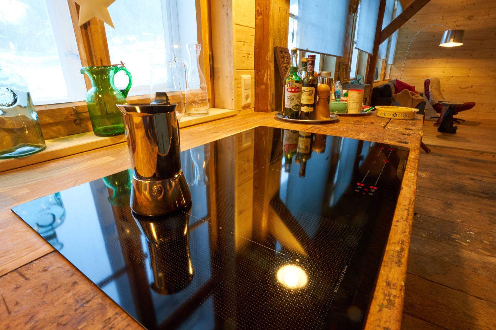 mit rund 70 qm Wohnfläche für Naturliebhaber, Individualisten, Holzliebhaber, Kochbegeisterte, Hundefreunde uvm. Ausgestattet mit einer schönen Einbauküche mit 80 cm-Induktionsfeld, Umluftbackofen und Dampfgarer, Kühlschrank